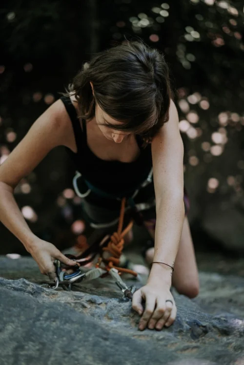 Jess: I have worked at four climbing gyms in the past decade, am pursuing my AMGA SPI certification, have been a youth climbing team coach, am a certified WFR and have been a ropes course facilitator. I have spent many weekends in climbing meccas like Joshua Tree, Bishop, Tahquitz Peak, The Obed, Chattanooga, the Red River Gorge, and Red Rock Canyon. To complement that, I am a yoga teacher and an E-RYT 200. I received my first 200hr RYT in 2013 in a Hatha practice, followed by a second 200hr RYT in Power Vinyasa in 2016. I have over 1,000 hours of teaching experience and have published a handful of articles on the subject of yoga and climbing.